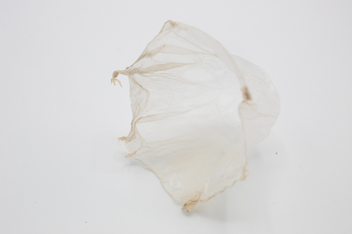 For this project I grew microbial cellulose using a recipe from the fashion designer, Suzanne Lee, who has worked with microbial cellulose as a new potential textile. The purpose was to research and experiment with this unusual material.